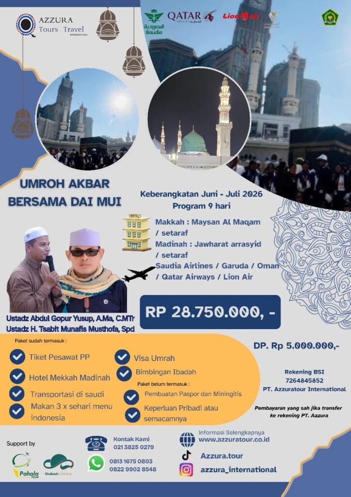 Alhamdulilah saat ini Azzuratour telah memiliki izin umroh resmi, untuk informasi paket lainnya dari Azzuratour silahkan hubungi Customer Service Azzuratour.